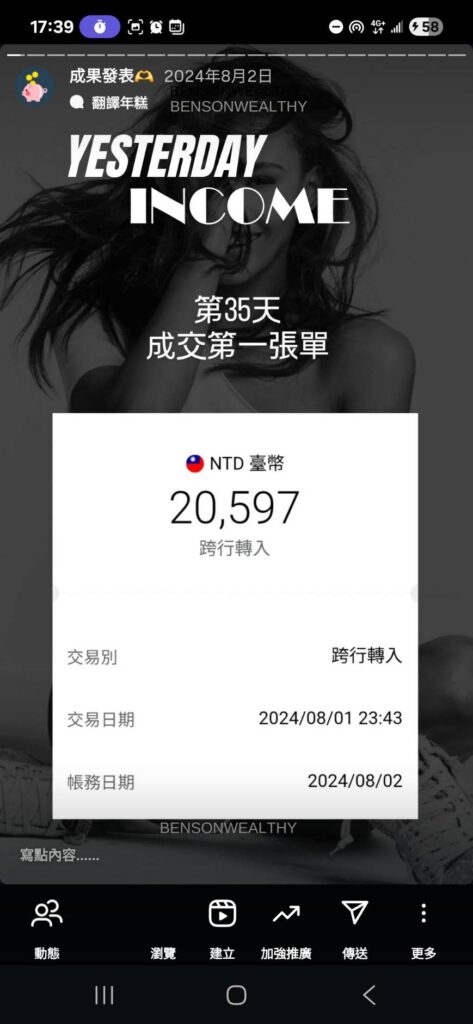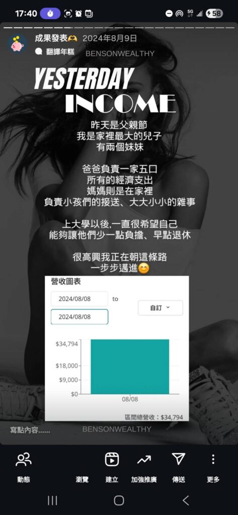 前 4 週完全沒收入,第 35 天靠 IG 賺進 2 萬元,第 48 天月入六位數