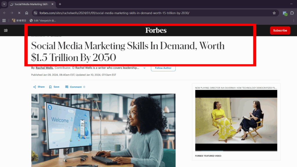 《富比世》公布數位行銷是 2024 年收入排行榜第一名,高達 $177,586 美元 !