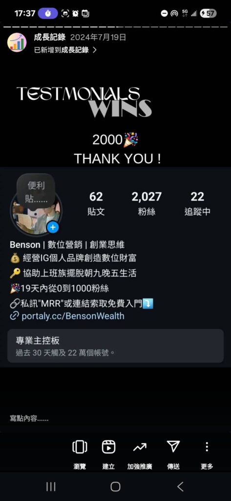 Instagram 23 天從 0 → 2,000 粉絲、觸及 30 萬+,並做出 3 支 10 萬播放短影片
