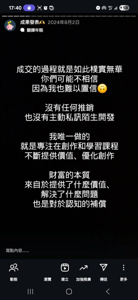 像我剛開始經營 IG 時,都會天天分享我的經營成果