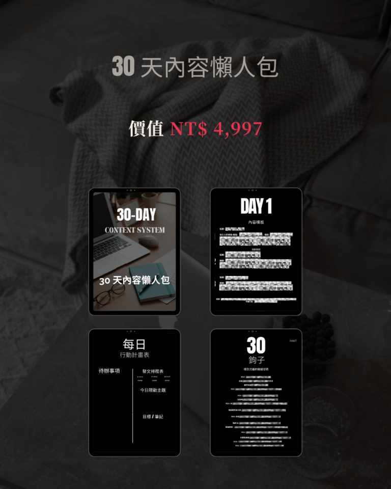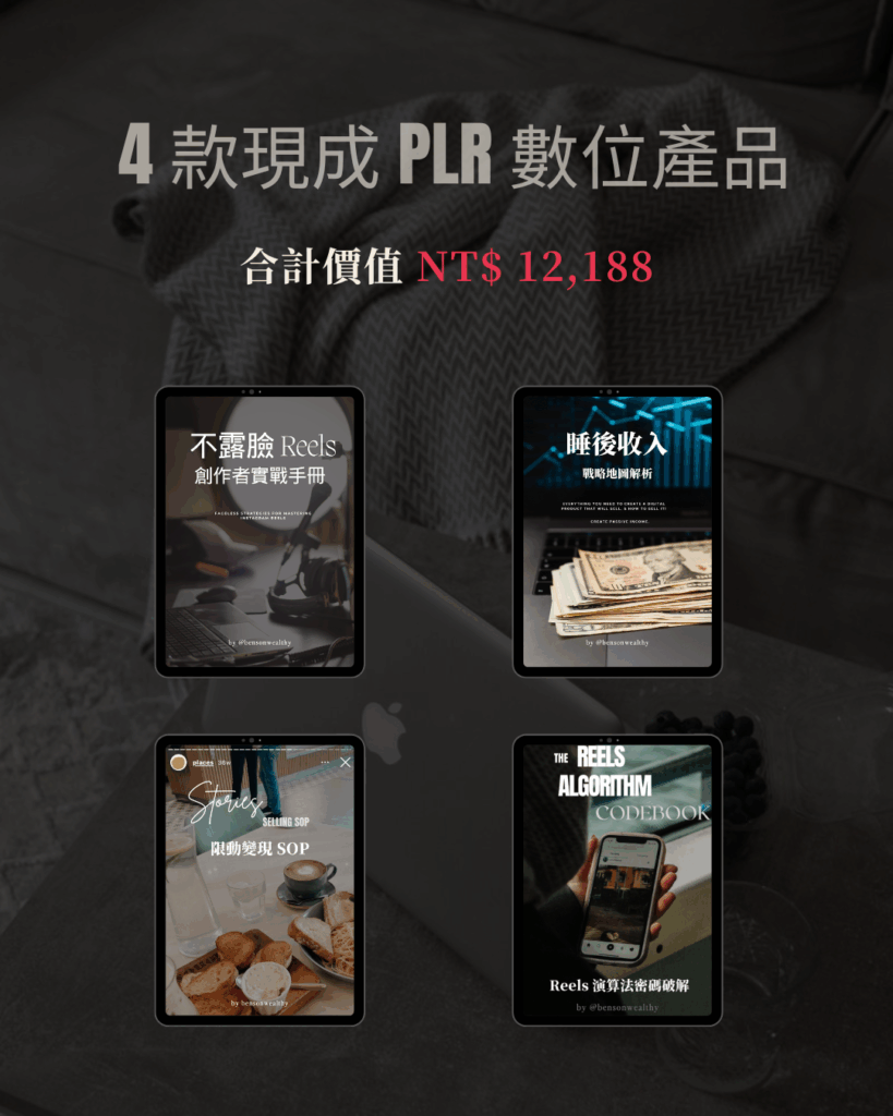 • 進階加值:PLR 電子書、內容策略模板、吸引力行銷